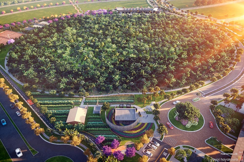 Além da fazenda para plantio de orgânicos, o condomínio será o primeiro a ter uma agrofloresta urbana exclusiva para os moradores, um sistema de recuperação ambiental que combina espécies arbóreas com espécies alimentares e aumentará a produção de alimentos no condomínio. Na fase inicial, enquanto as mudas das espécies arbóreas estão pequenas, são plantadas hortaliças, mandioca, pimenta, tomate, banana, alfaces, rúculas, agrião, cenouras, beterrabas, couve-flor, brócolis, couves e outras que precisam receber sol. Nas fases seguintes, as espécies alimentares serão as frutíferas e culturas de meia sombra que se desenvolvem bem sob as árvores que crescem. Serão 2.700 mudas plantadas inicialmente, já na fase de obras do condomínio, em uma área de 2,4 hectares.