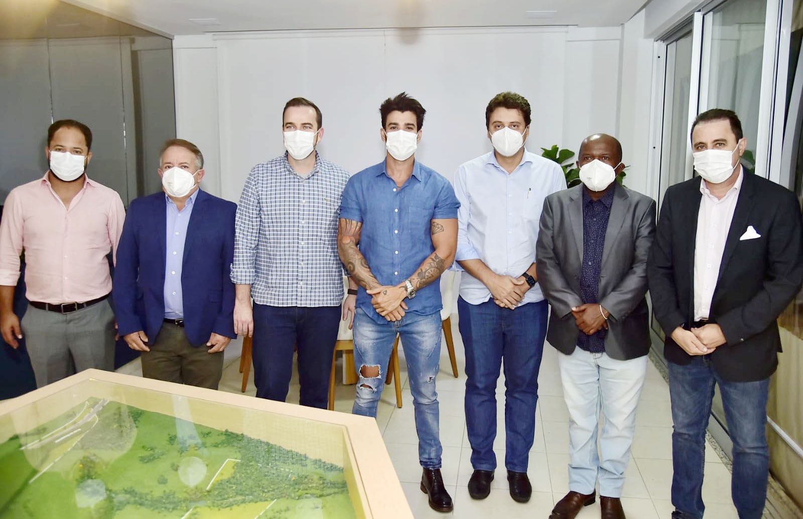 A dupla, que conferiu a maquete do Polo Aeronáutico, foi recebida pelo empresário Romeu Neiva. Segundo ele, “Gusttavo é um admirador do projeto e também um usuário constante de aeronaves, por isso se interessou em conhecer o empreendimento, que está posicionado estrategicamente em uma das cidades da região metropolitana de Goiânia que mais cresce no Estado”, afirmou Neiva.