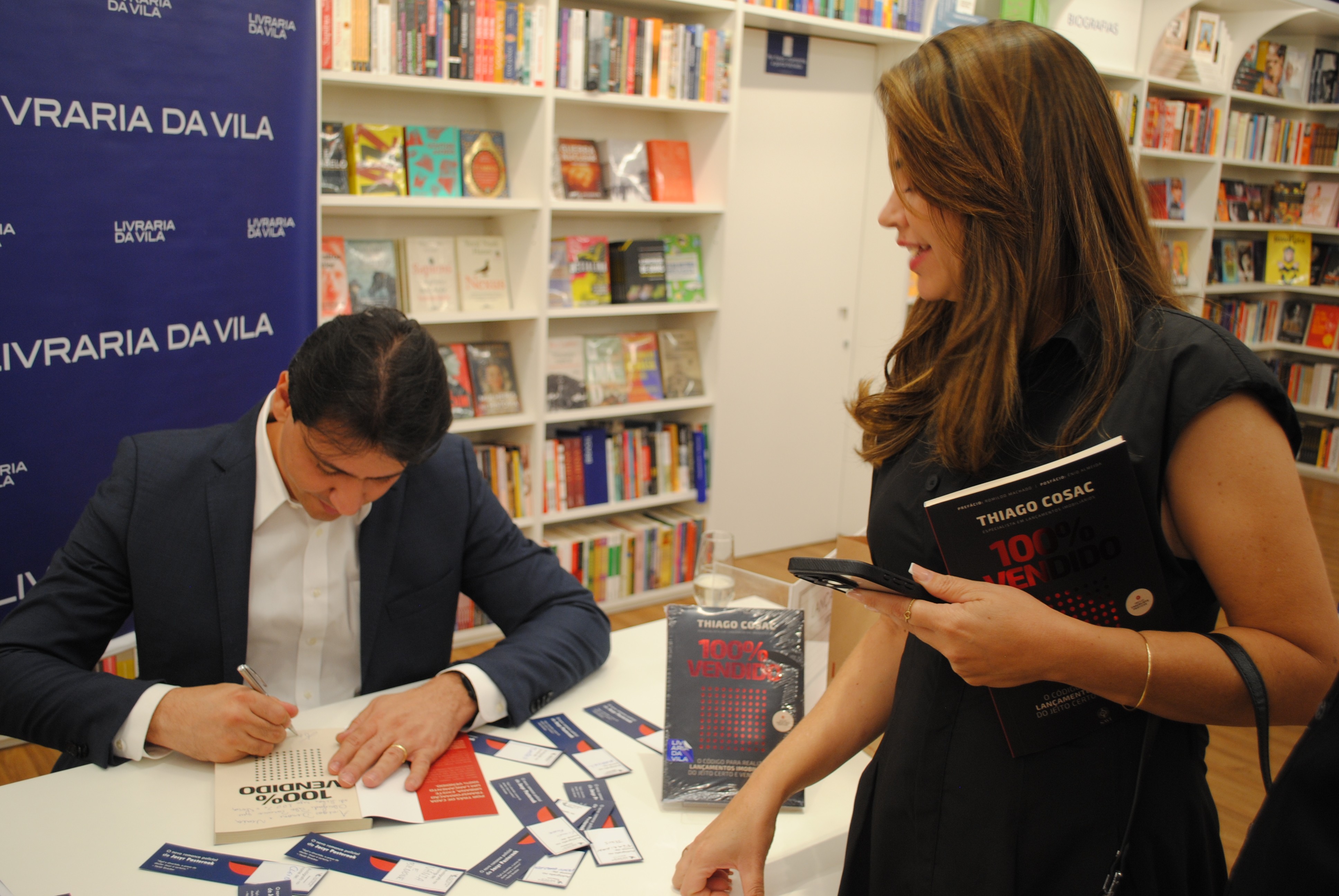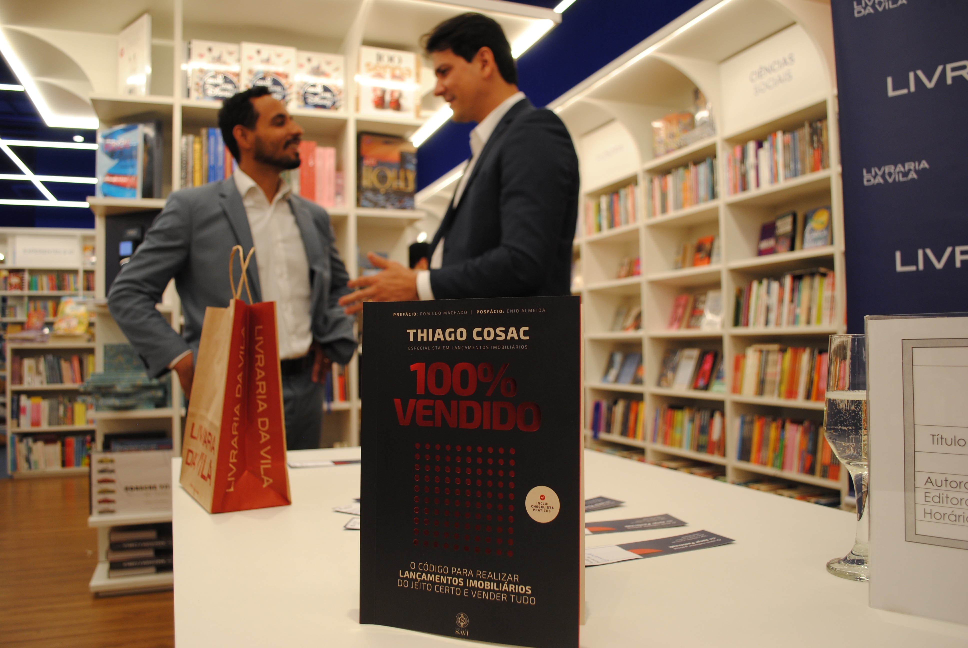 Thiago Cosac é especialista em lançamentos imobiliários com 21 anos de experiência, fundador da Mais VGV Brasil e autor do livro. Ao todo, acumula 14 anos de lançamentos imobiliários e mais de 50 empreendimentos em 21 cidades e 5 estados. Agora ele compartilha sua experiência no livro “100% Vendido” (Editora Savi), lançado na última quinta-feira,31, na Livraria da Vila, no Shopping Flamboyant.